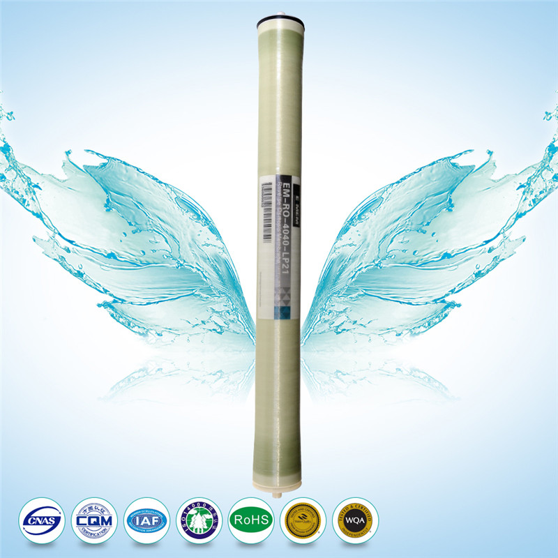 LE( Low Energy)系列是E-MEM研制開發(fā)的用于自來水和地下水脫鹽的超低壓芳香族聚酰胺復(fù)合膜元件,能在超低的操作壓力條件下達到與常規(guī)低壓膜相同的高水通量和高脫鹽率。其運行壓力約為常規(guī)低壓復(fù)合膜運行壓力的2/3,從而降低相關(guān)的泵、管路、容器等設(shè)備的投資費用和反滲透系統(tǒng)的運行費用,提高經(jīng)濟效益。 LE系列膜元件適用于含鹽量低于2000ppm 的RO產(chǎn)水、地下水、自來水及市政用水等水源的脫鹽處理,主要應(yīng)用于各種規(guī)模的純凈水、鍋爐補給水、食品加工和藥品制造行業(yè)等多種領(lǐng)域。